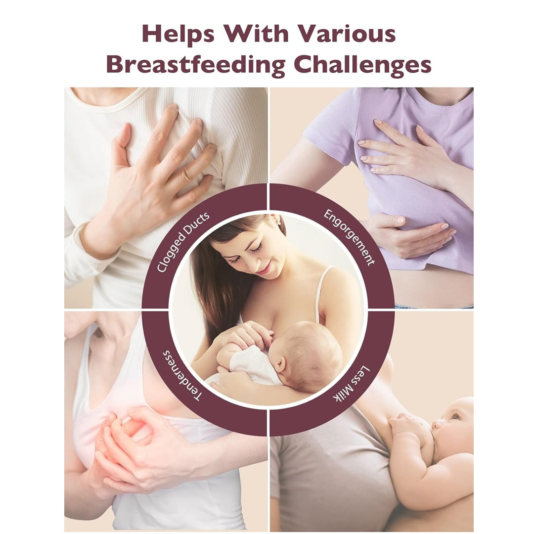 As effective as a hot shower, as gentle as human hands, and as professional as a carer, our massager blazes a new trail to integrate the deep-shiatsu kneading massage balls onto the traditional ones, which can actually unplug the milk ducts like real massagists to not only empty the milk every time breastfeeding or pumping, but also relieve the engorgement in time in prevention of mastitis.