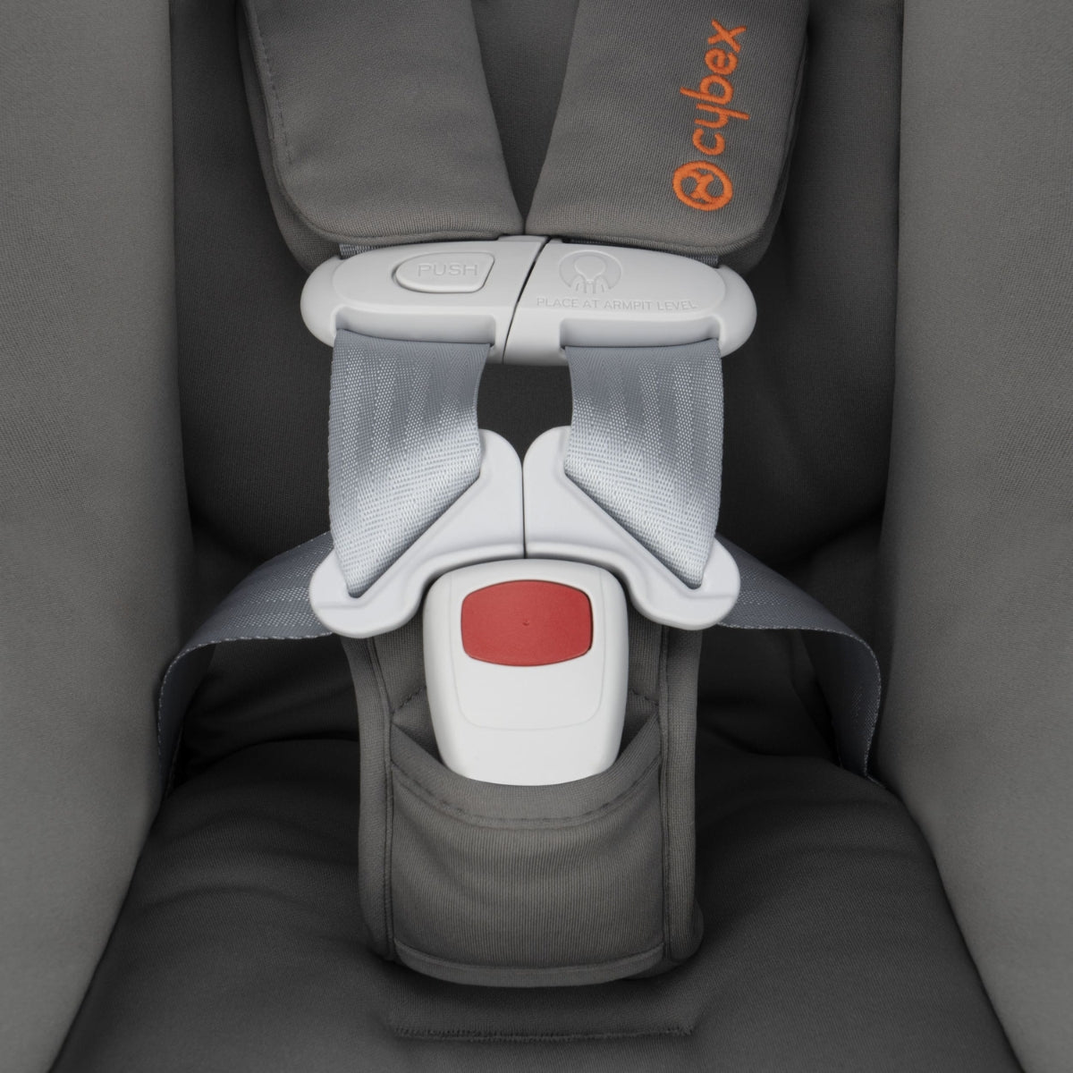 EASY-IN BUCKLE: keeps the harness buckle pointing forwards, making it easier to sit your child in the seat and buckle them up