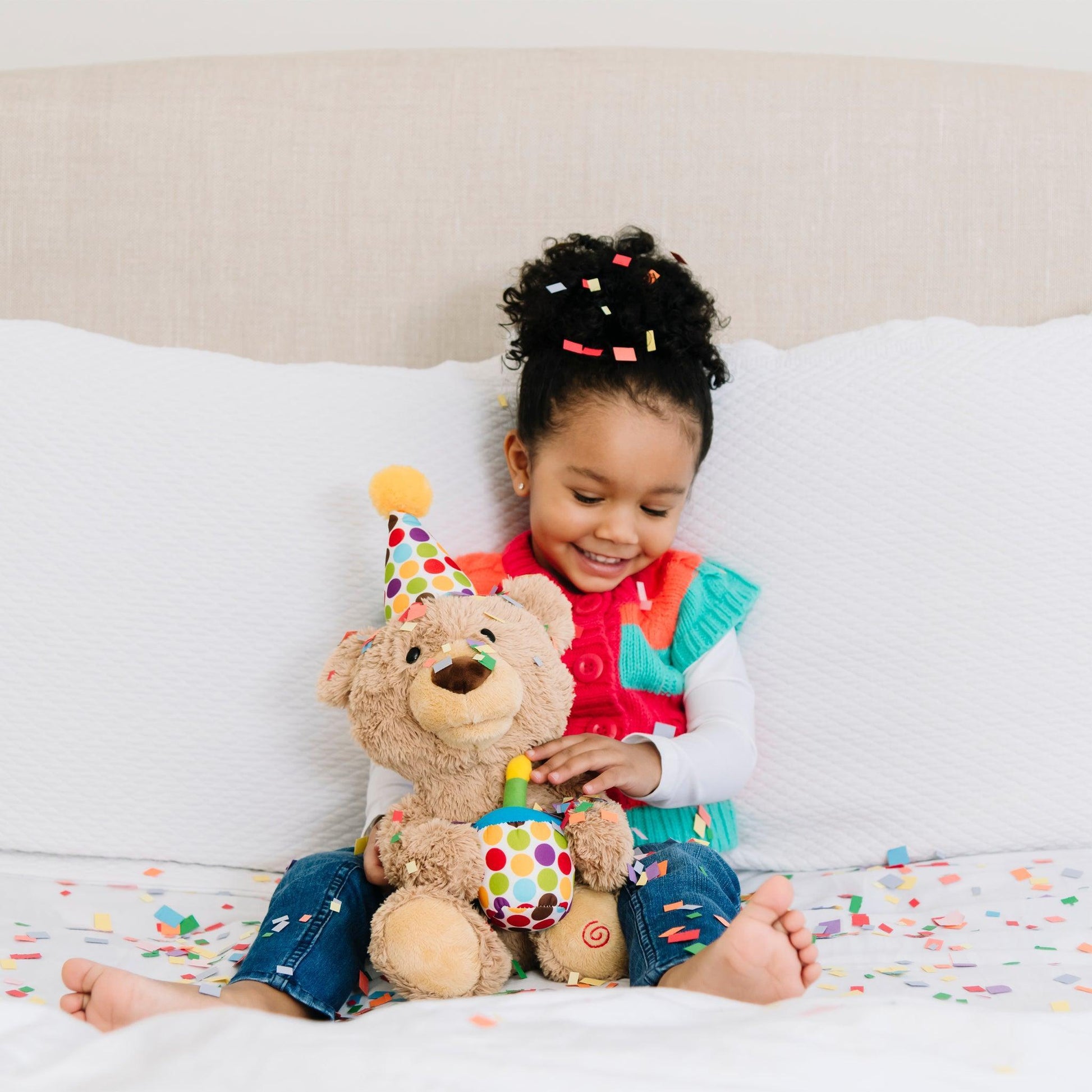 Surprise the birthday boy or girl with a singing, moving teddy bear that's just as cuddly as it is fun to watch. Push teddy's foot to begin the magic and hear it sing a happy birthday as it's head and mouth move to the beat. The candle on its cupcake even glows with safe LED light.
