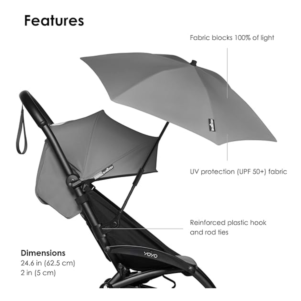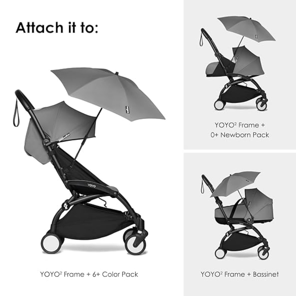 This Babyzen Gray Yoyo+ Parasol easily attaches to the frames of Babyzen YOYO + ZEN strollers to provide instant shade for baby.