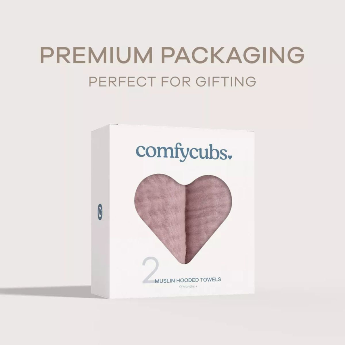 About Comfy Cubs Hooded Baby Towel 2 pack 100% Muslin Cotton - Mauve