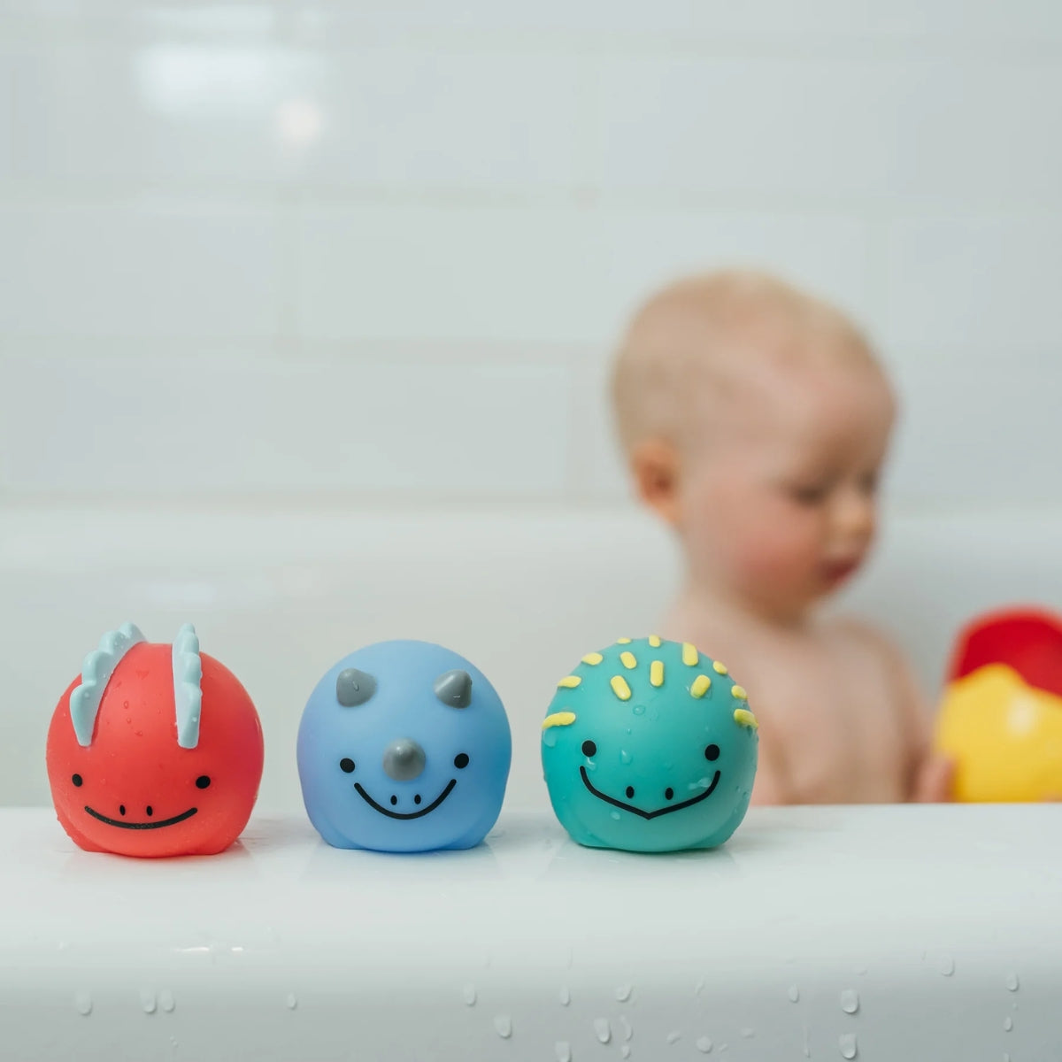 Dr. Brown’s™ Float & Hatch Dino Eggs baby bath toy provides egg-cellent bath time fun! The eggs “crack” open to reveal 3 nesting dino friends.