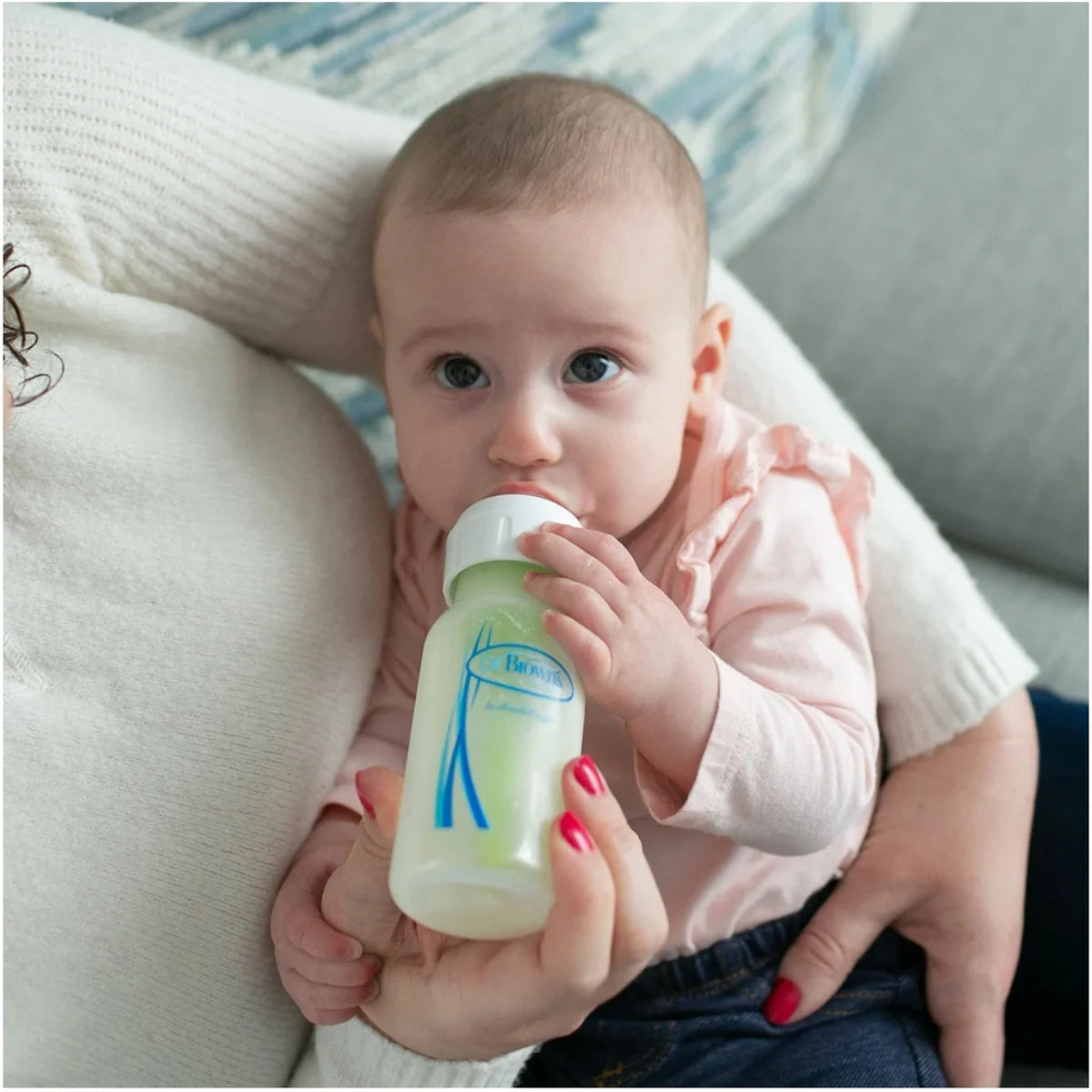 Your options have never been better with Dr. Brown’s Natural Flow® Anti-Colic Options+™ Narrow Baby Bottle. The anti-colic internal vent system is clinically proven to reduce colic. Dr. Brown’s® bottles provide a more comfortable feeding experience for baby by decreasing spit-up, burping, and gas.