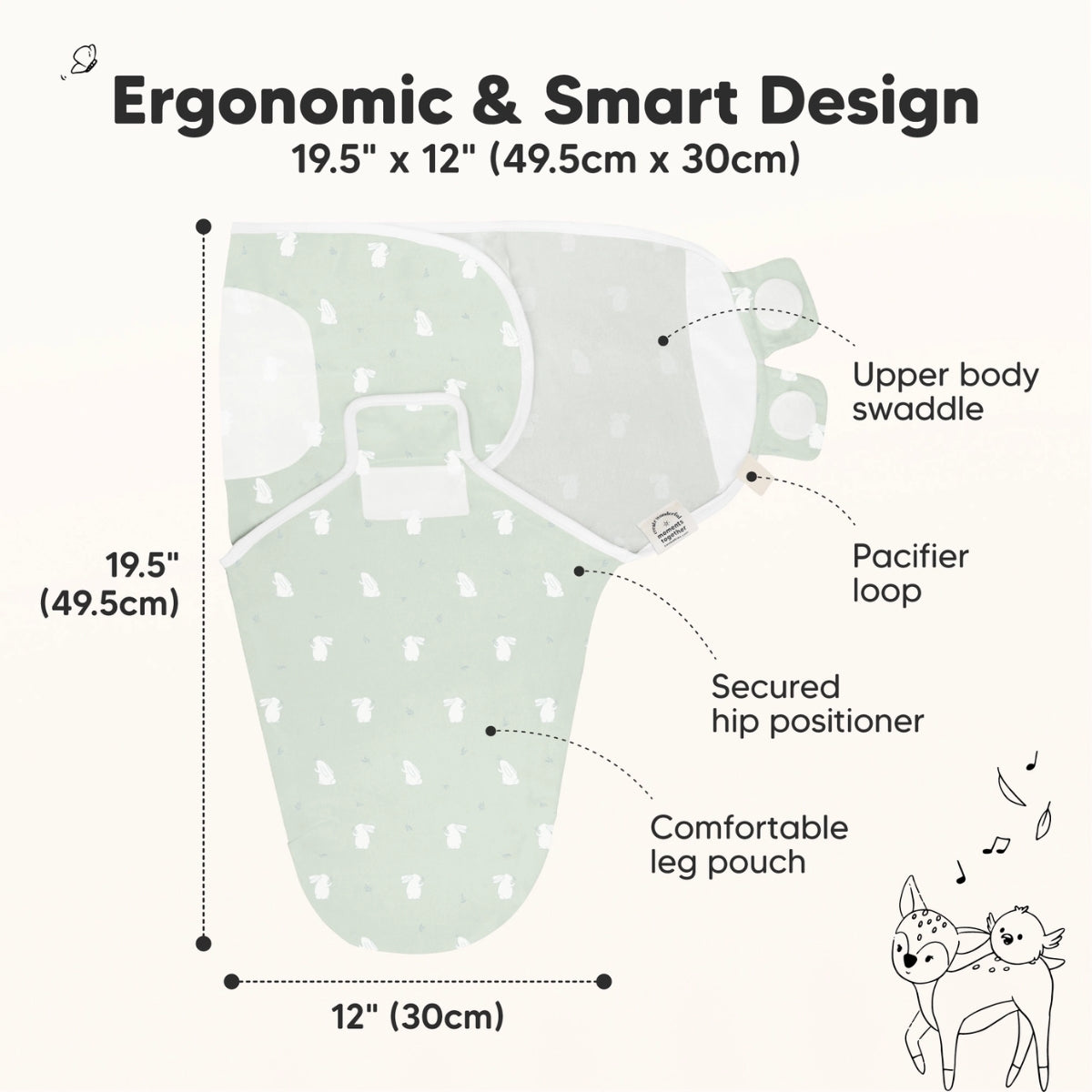 KeaBabies 3pk Soothe Baby Swaddles 0-3 Months, Sleep Sack for Newborns Bunnies