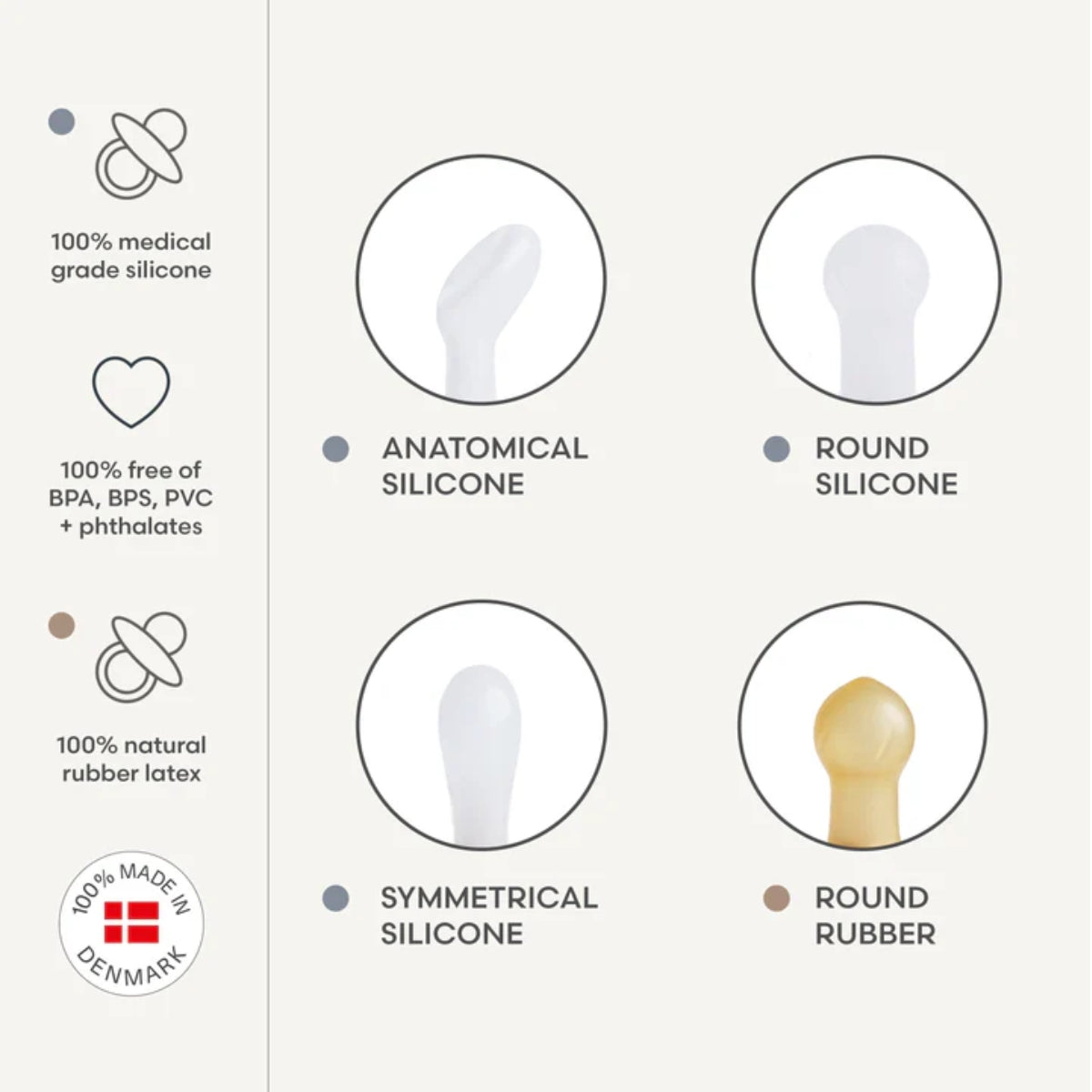About Mushie FRIGG Natural Rubber Cinnamon Charm Pacifier 6-Pack