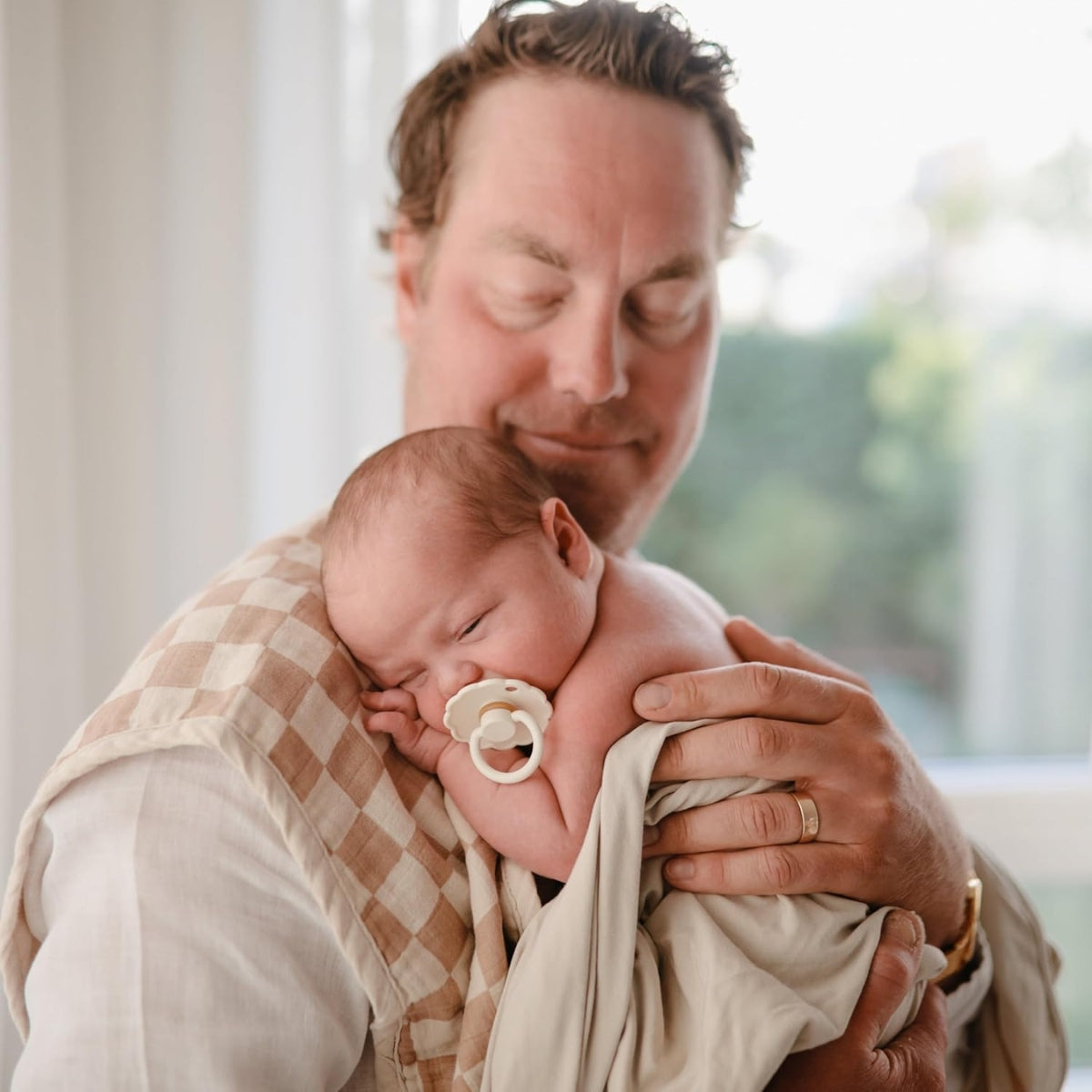 The FRIGG line of natural rubber pacifiers have been thoughtfully designed for your baby's comfort. The outward curve keeps the pacifier off their delicate skin, while features like air holes and a security handle ensure your baby stays safe. Available in a range of soft colors, FRIGG pacifiers make a beautiful addition to your collection of baby essentials.