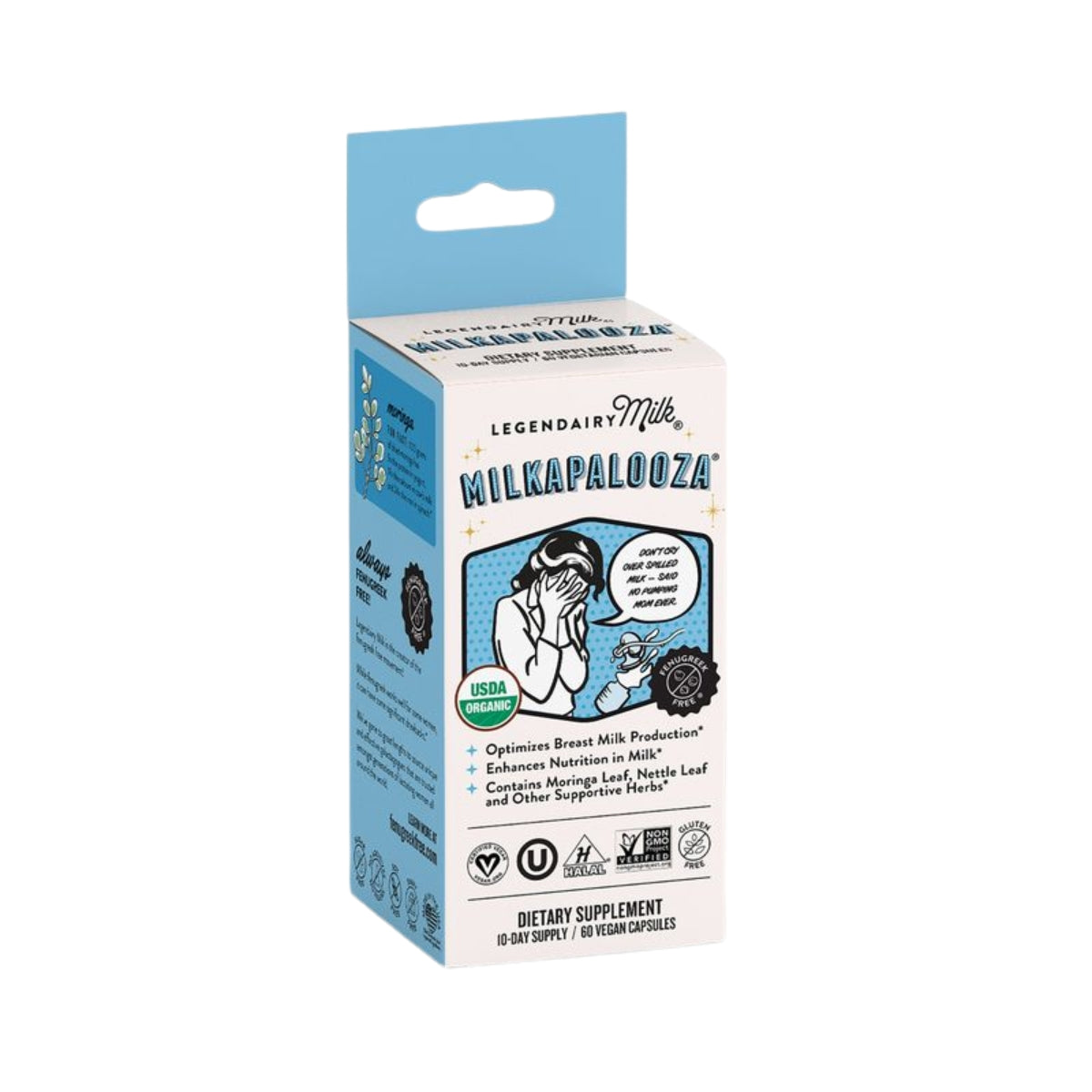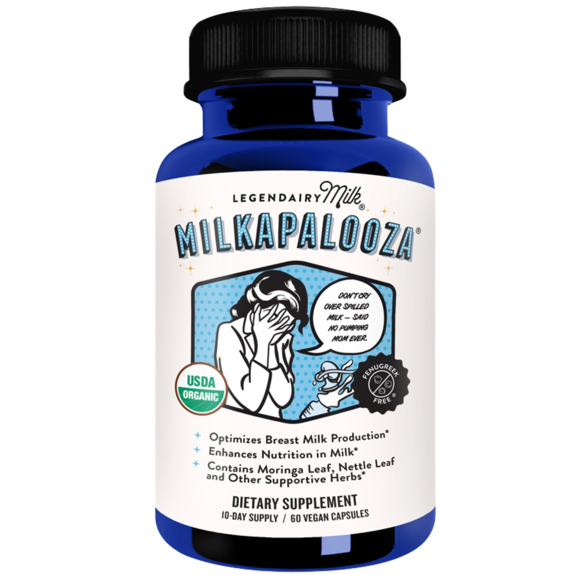 "Don't cry over spilled milk -- said no pumping mom ever." There's really no such thing as overreacting when it comes to spilled breast milk. If you need to cry, yell, or even have a moment of silence for your dearly departed milk, you're completely justified. Every drop of breast milk is precious and we know you work hard to provide your baby with the best nutrition. Milkapalooza can help support you with potent, milk-enriching superfoods. Milkapalooza contains a blend of organic ingredients designed to optimize healthy lactation and enhance nutrition in breast milk: Moringa, Nettle Leaf, Shatavari, and Fennel. Legendairy Milk has helped over 1 million moms worldwide on their breastfeeding journeys. Their lactation supplements promote healthy milk production in nursing and pumping mothers with organic ingredients sourced from different cultures around the world. Lactating women in these regions have been using these traditional herbs for centuries to aid their milk production, so it's easy to see why legendary mamas can't get enough of Legendairy Milk products. Not for use during pregnancy. Keep away from children. Store in cool, dry place. Hypersensitivity, such as allergy, may occur; in which case, discontinue use. Take with food and stay hydrated. These statements have not been evaluated by the Food and Drug Administration. This product is not intended to diagnose, treat, cure or prevent any disease.