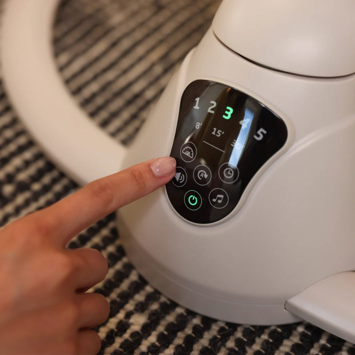Customized comfort and calming sounds Choose from 5 swing speeds, 2 recline positions, and 12 melodies and nature sounds through the intuitive touch screen panel for a personalized soothing experience. |