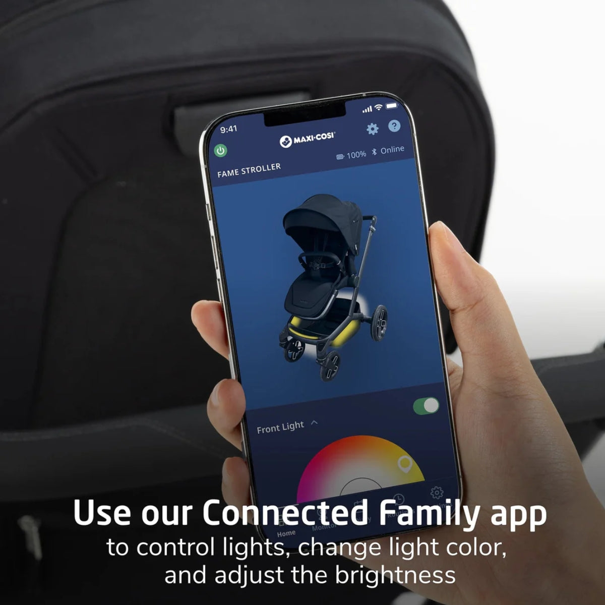 Step into the future of family travel with the Maxi-Cosi Fame Modular Stroller. This advanced stroller blends luxurious design, technology, and unmatched functionality for modern families. Offering both parent-facing and world-facing modes, the Fame provides versatility and comfort for your little one. Equipped with innovative features such as integrated LED lights on the frame, a USB-C port for mobile charging, and an ultra-padded memory foam seat, the Fame is not just a stroller – it's a statement piece. Whether you’re strolling through the city or adventuring on mixed terrains, the Fame ensures a smooth, secure ride with all-wheel suspension and large puncture-proof tires. With a self-standing fold and eco-friendly materials, the Fame Modular Stroller is the perfect blend of sophistication and convenience.