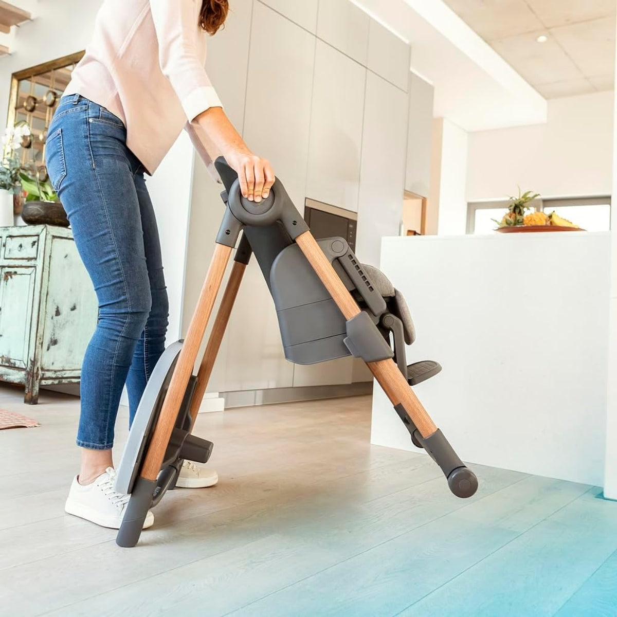 Designed with real family life in mind, Minla makes cleanup simple and stress-free. The zip-off seat pad is machine washable, the snack tray insert is dishwasher safe, and the remaining surfaces wipe clean easily thanks to liquid-repellent fabrics. When not in use, Minla folds down into a slim, compact profile to save space, while its refined color palette blends seamlessly into modern home décor.