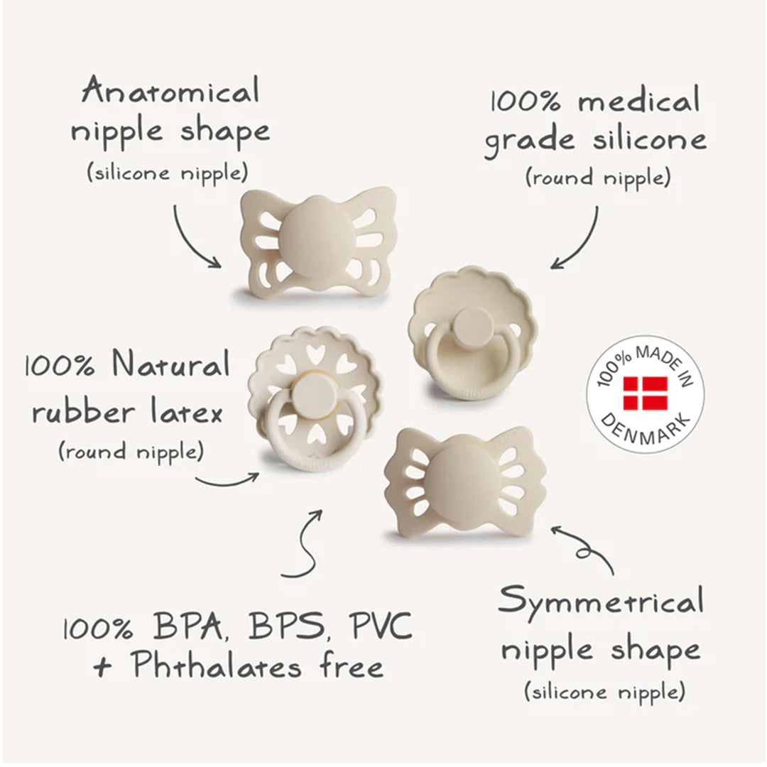 About Mushie FRIGG Baby's First Pacifier Floral Heart 4-Pack 0-6M Cream