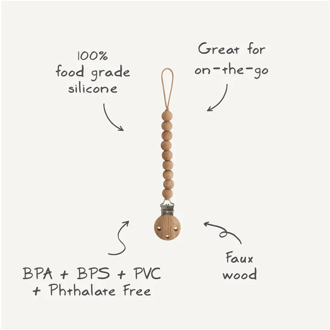 The Mushie silicone pacifier clip offers durability, function and simplicity to families on-the-go. Made from 100% food-grade silicone, our clip features a silicone clasp that brings a modern take to a traditional favorite. With a single color stack of silicone beads, the Hera clip offers families a beautiful accessory in a minimalist design. The clip is easy to clean and helps keep soothing items in reach for little ones.