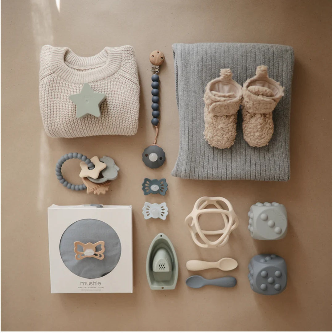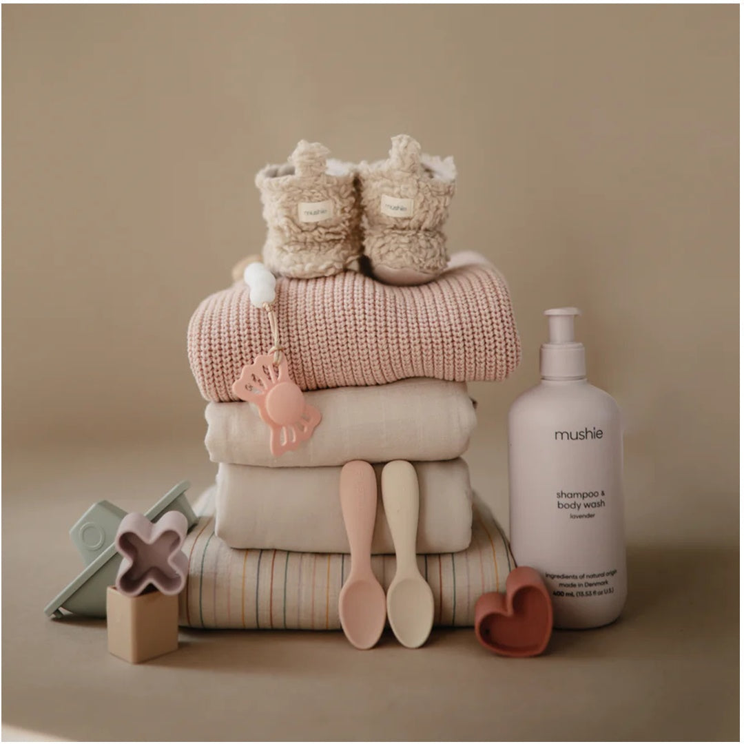 About Mushie Silicone Toddler Starter Spoons 2-Pack Blush/Shifting Sand