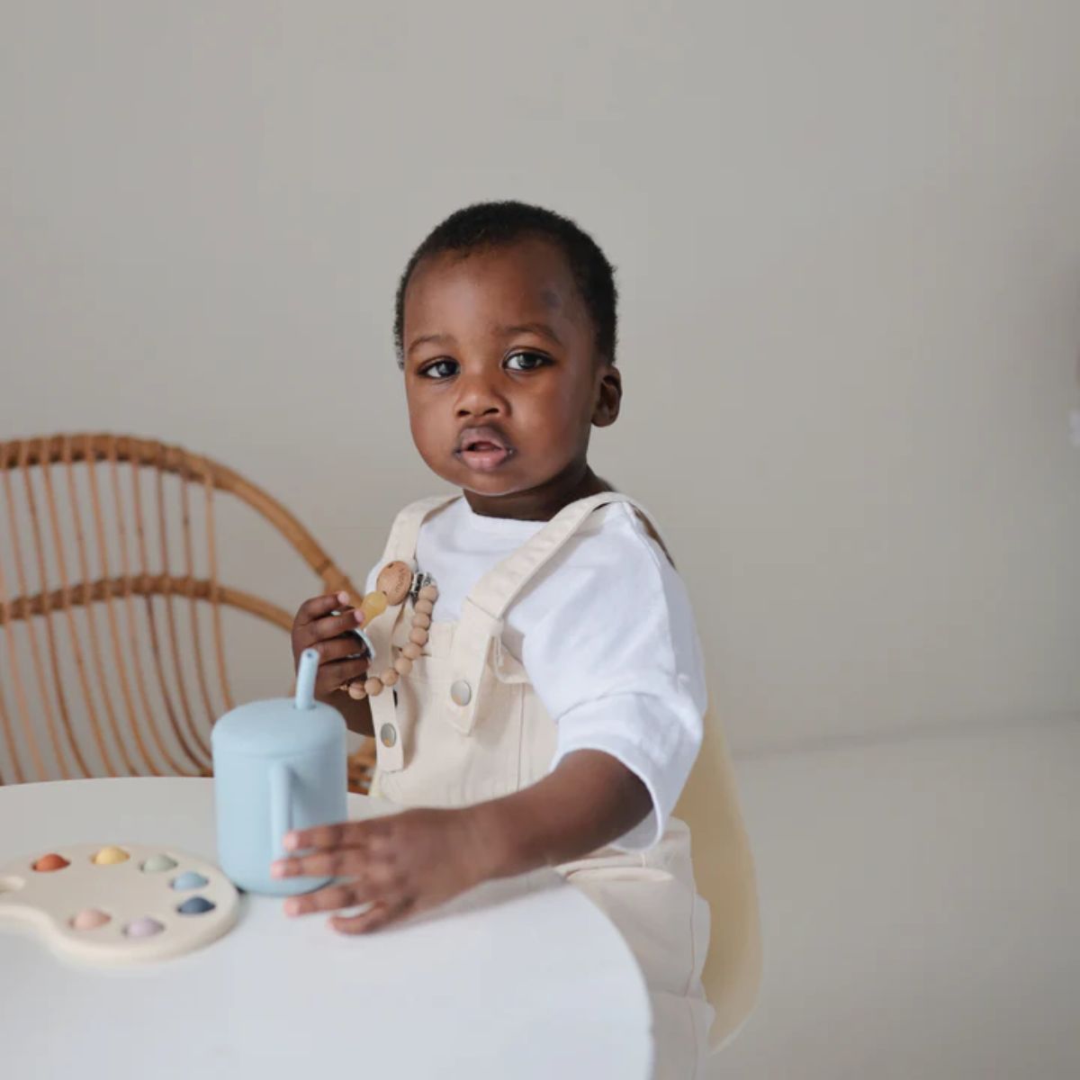 About Mushie Silicone Training Cup + Straw - Powder Blue