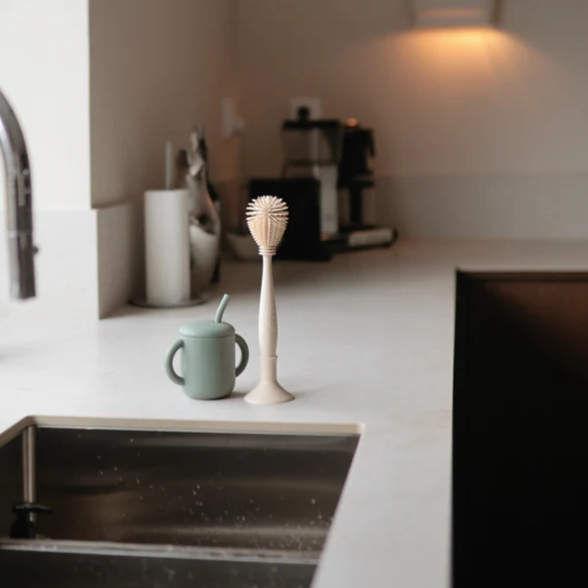 Put a lid on spills and messes with a sophisticated training cup designed for little hands and beautiful homes. Made from 100% food grade silicone, this minimal cup comes with a removable lid and a gentle straw for baby gums and toddler teeth. Build up fine motor skills and start young feeders on their transition journey from bottle to cup.