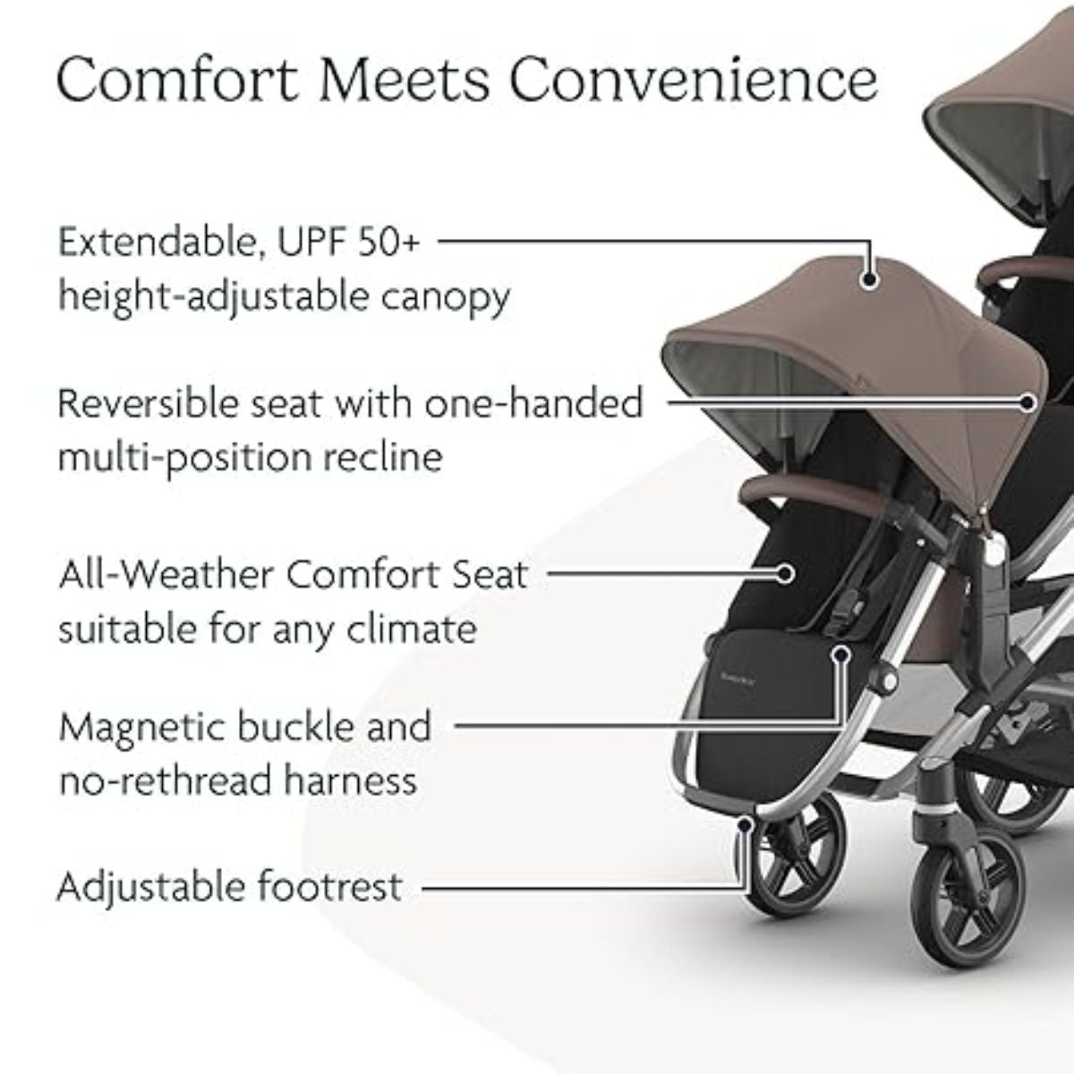 The UPPAbaby RumbleSeat V3 combines functionality, safety, and premium craftsmanship — making every stroll a smooth and stylish experience for both parent and child.