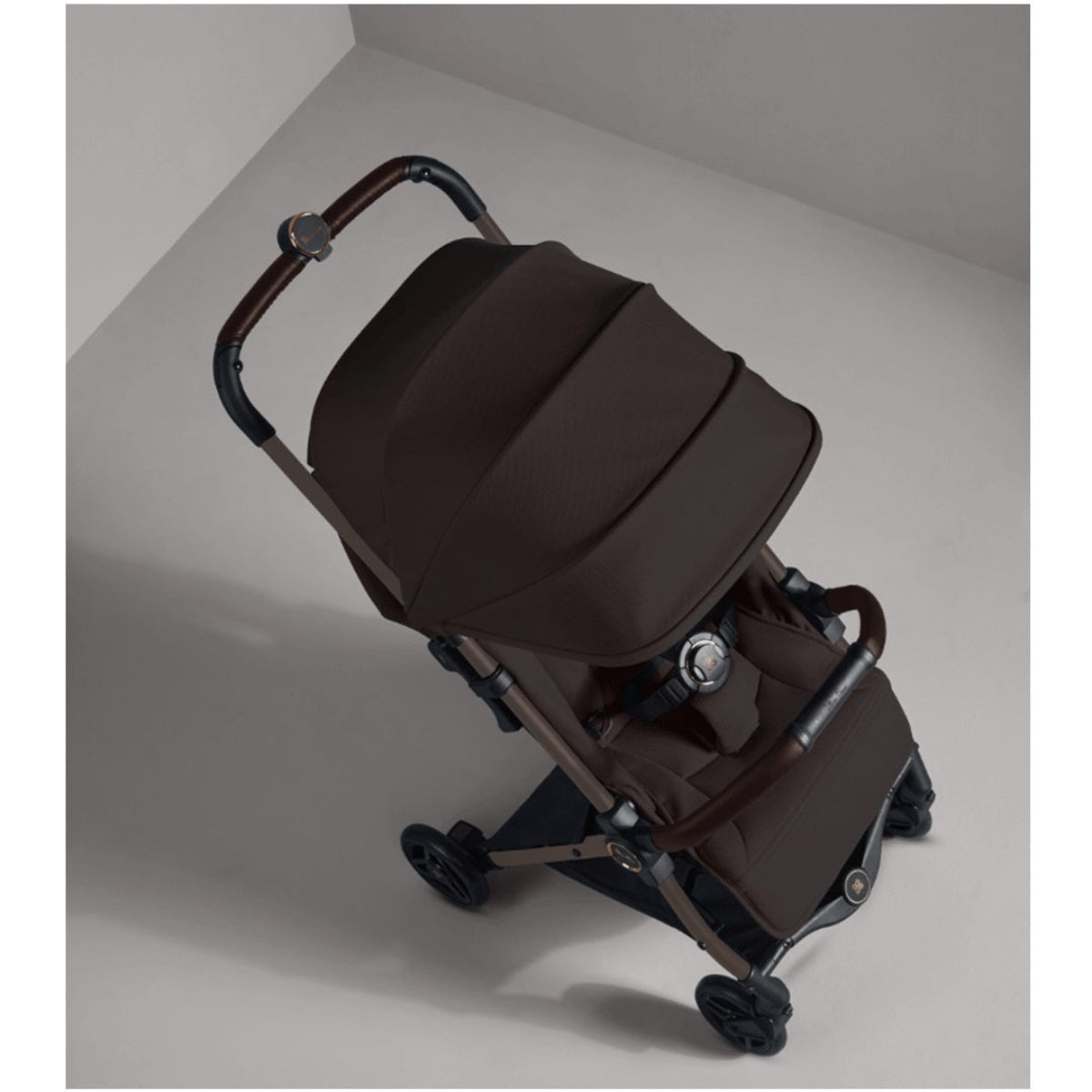 Silver Cross Jet 5 Stroller in Ganache—lightweight, compact, travel-ready with smooth suspension, multi-recline seat, and luxe style for city parents.