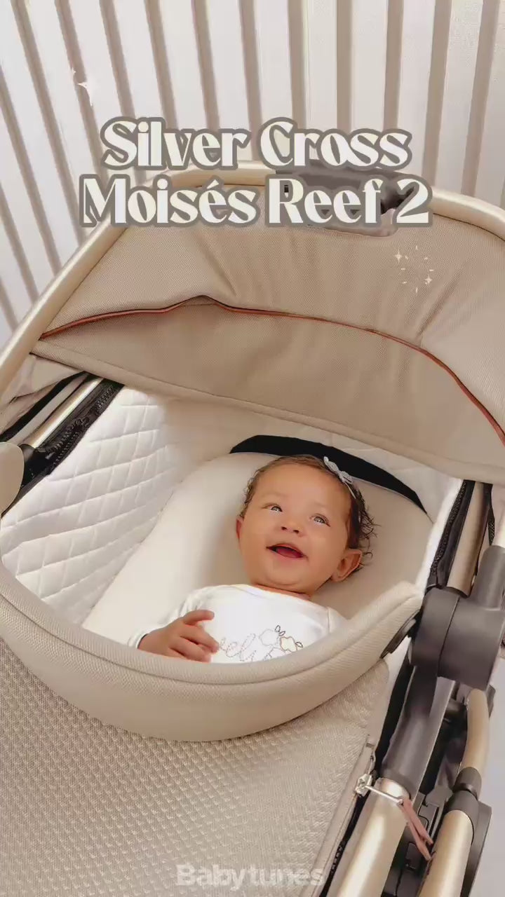 Silver Cross Reef 2 Bassinet offers overnight sleep safety, bamboo lining, airflow vents & UPF50+ hood. Compatible with Reef, Reef 2 & Dune stands.