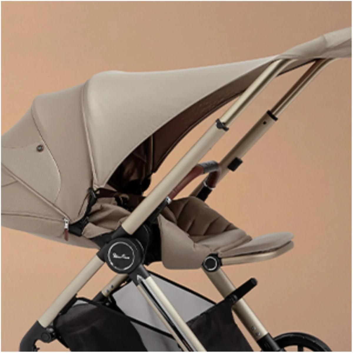 Beautifully tailored with contemporary, sustainable fabrics, a tonal matte metallic chassis and soft satin details, you’ll stroll effortlessly through city streets and countryside escapes with Reef 2– the ultimate stroller designed to complement your fashion sense.