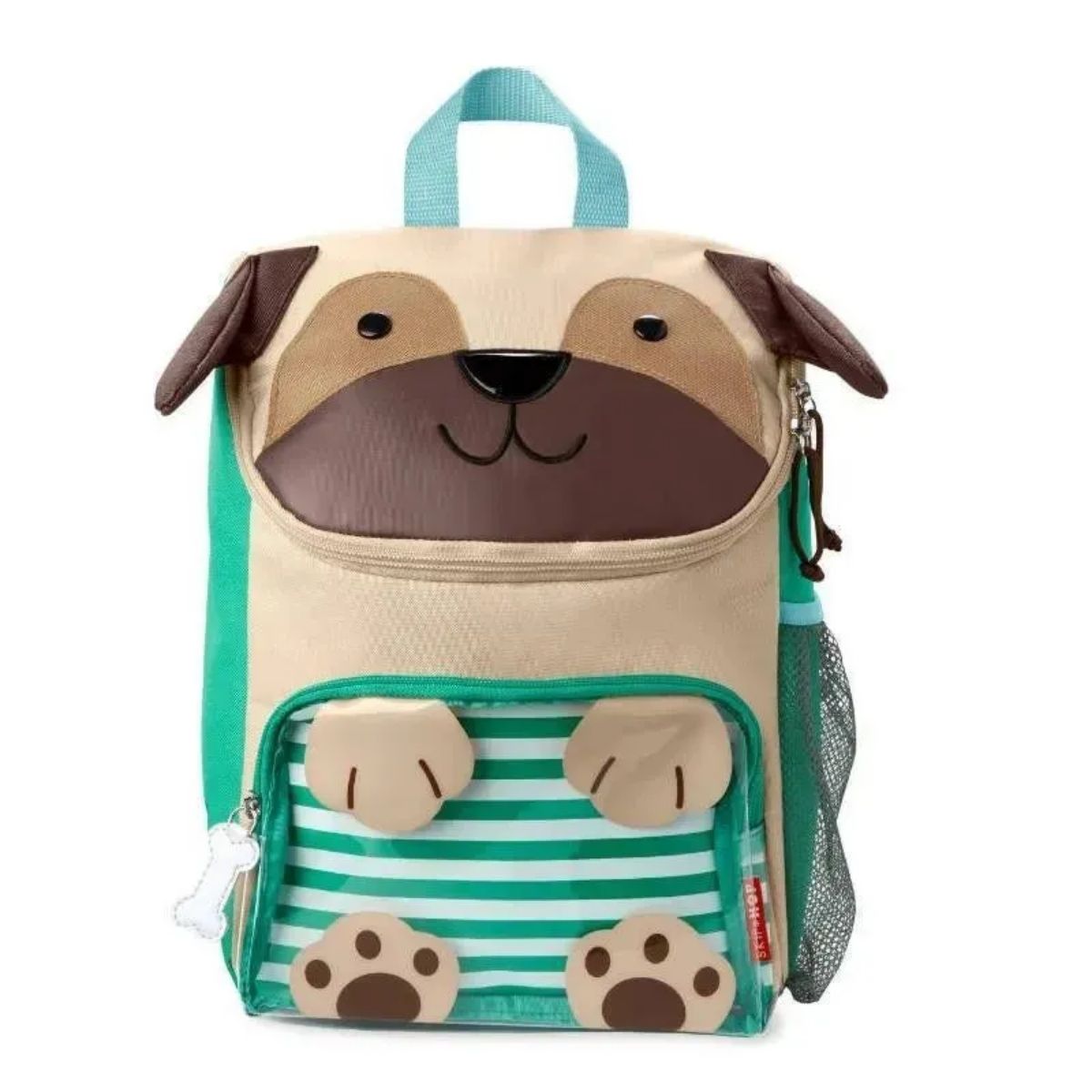 Skip Hop Big Kid Backpack Zoo Pug is a larger toddler and kindergarten backpack designed for ages 3 to 4. Perfectly sized to fit school folders, supplies and a lunch bag, this lightweight kids backpack features a wide easy access opening, clear front pocket and mesh bottle holder, combining playful 3D Zoo character details with practical everyday school functionality.