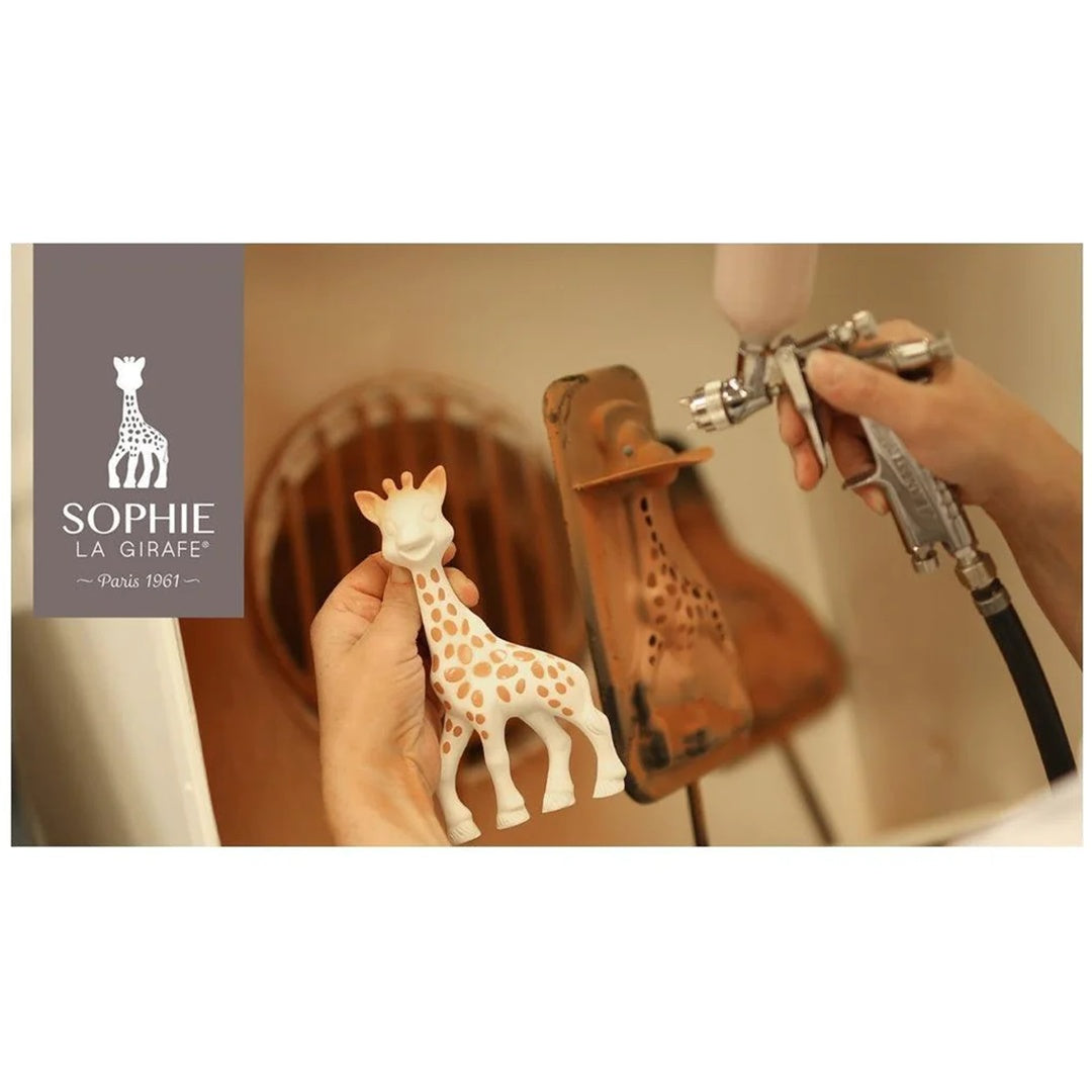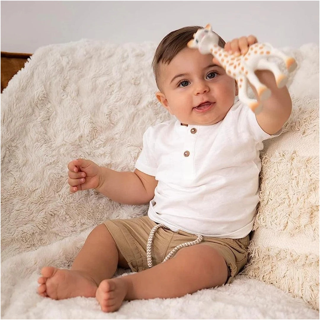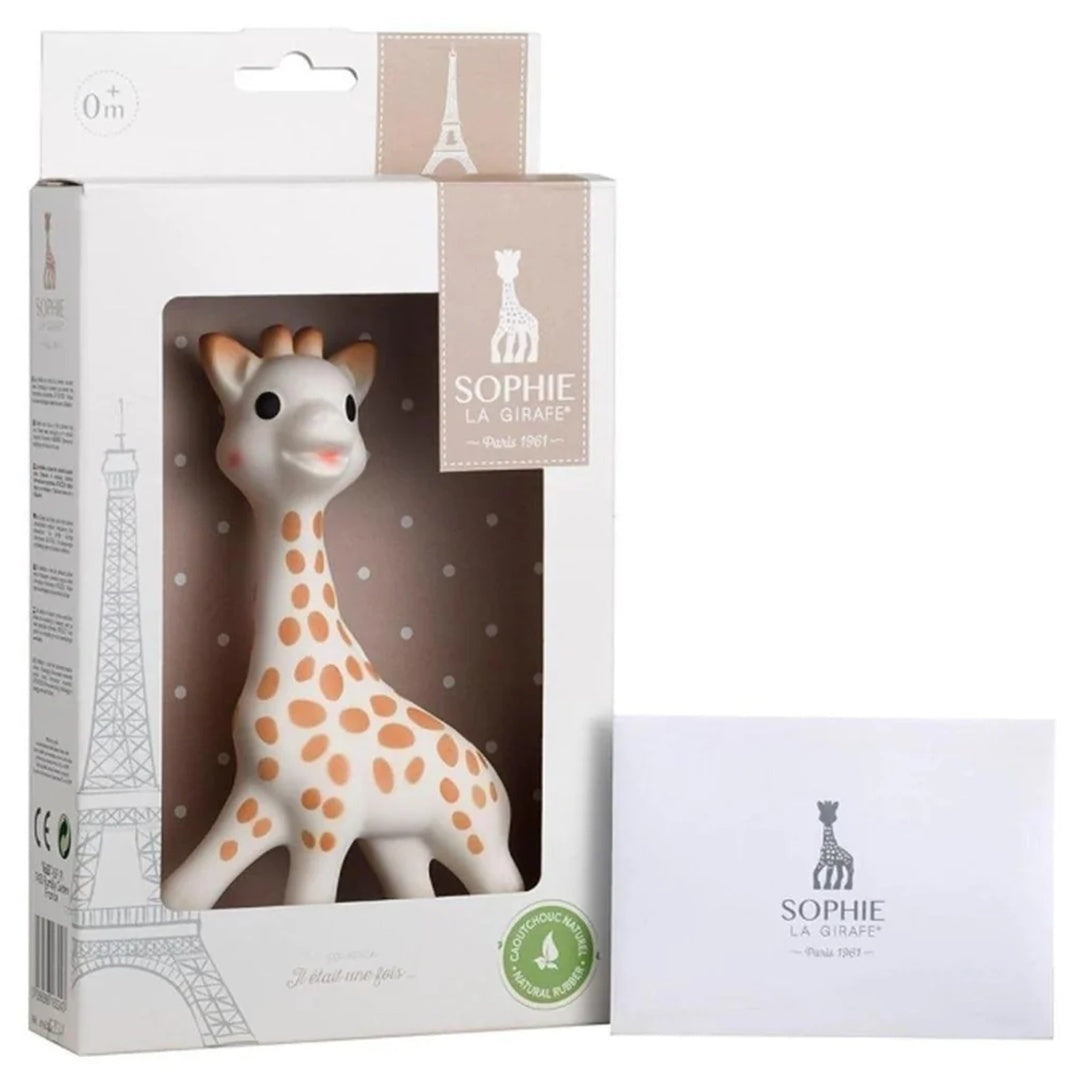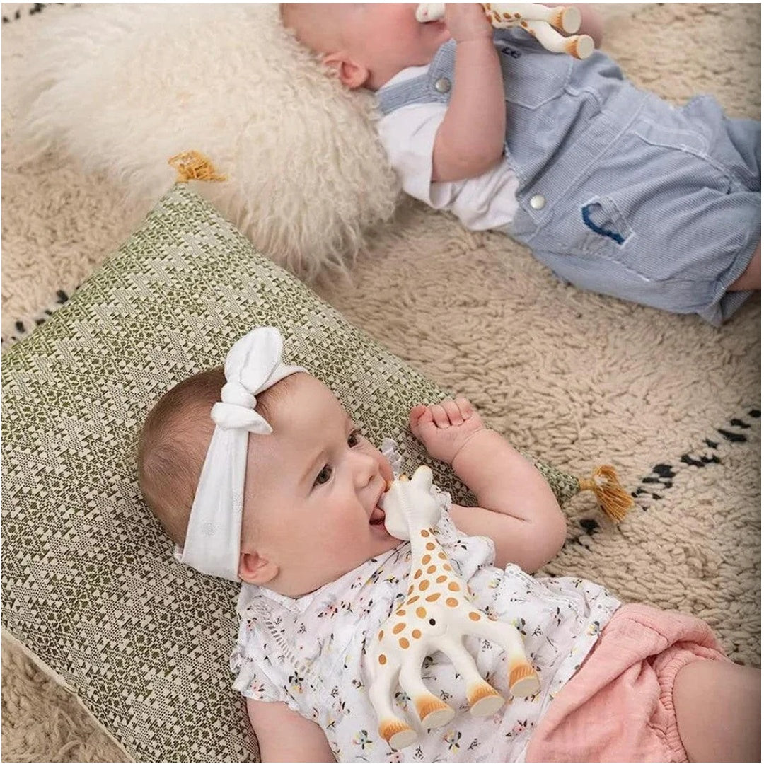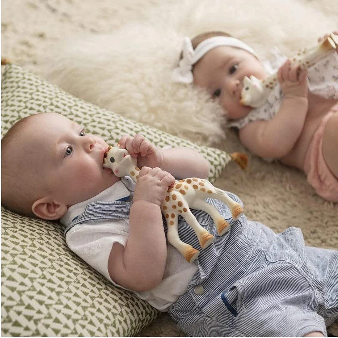 Most beloved teether of all time, Sophie La Girafe is very flexible and soft, perfect for your baby to grip, touch and chew on. Featuring dark and constrasting spots all over, squeaker sound and the singular scent of natural rubber, she will stimulate your baby's hearings and soothe his/her sore gums when teething.