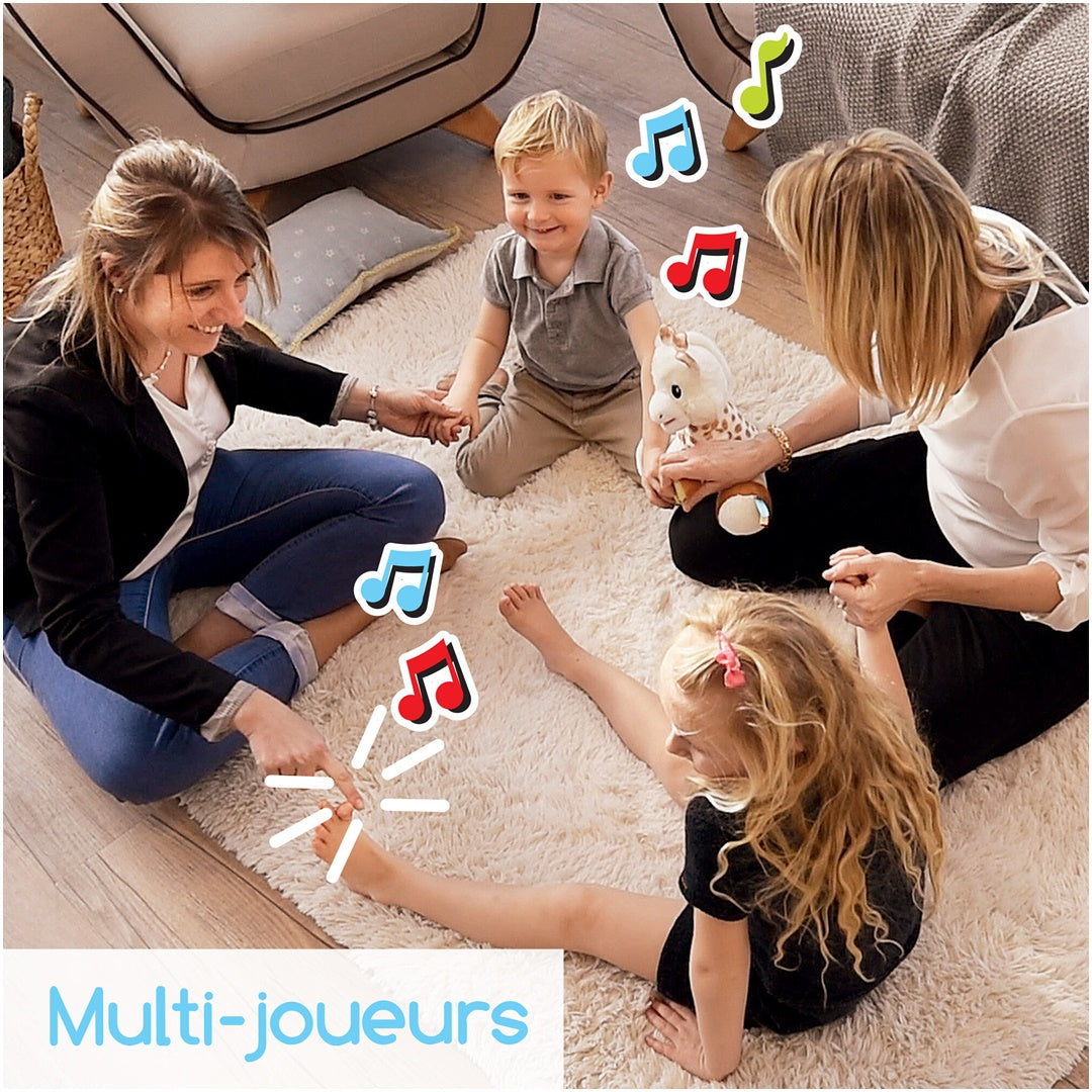 This new touch and play Sophie la giraffe is the all in one sensory toy companion! This interactive toy has sounds to engage your babies hearing development.