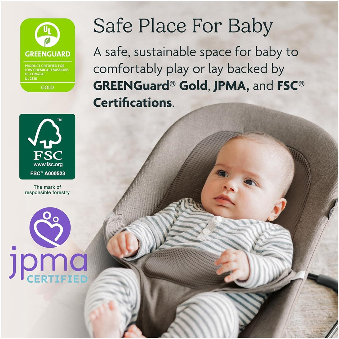 About UPPAbaby Mira 2-in-1 Bouncer and Seat - Charlie (Sand Melange / Black Frame / Walnut Wood)