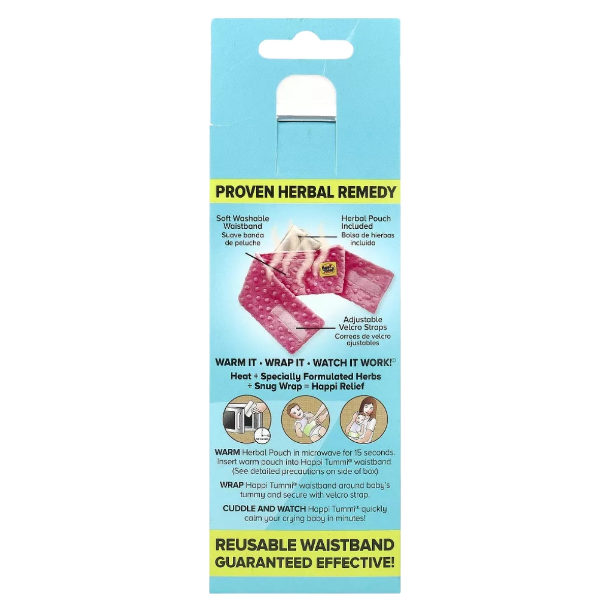 Happi Tummi includes one soft, minky dot waistband to hold the heated herbal pouch against your baby's belly. The patented herbal pouch works its magic through a mix of seven ingredients including lavender, chamomile, lemon grass and peppermint — all sourced from the country of origin.